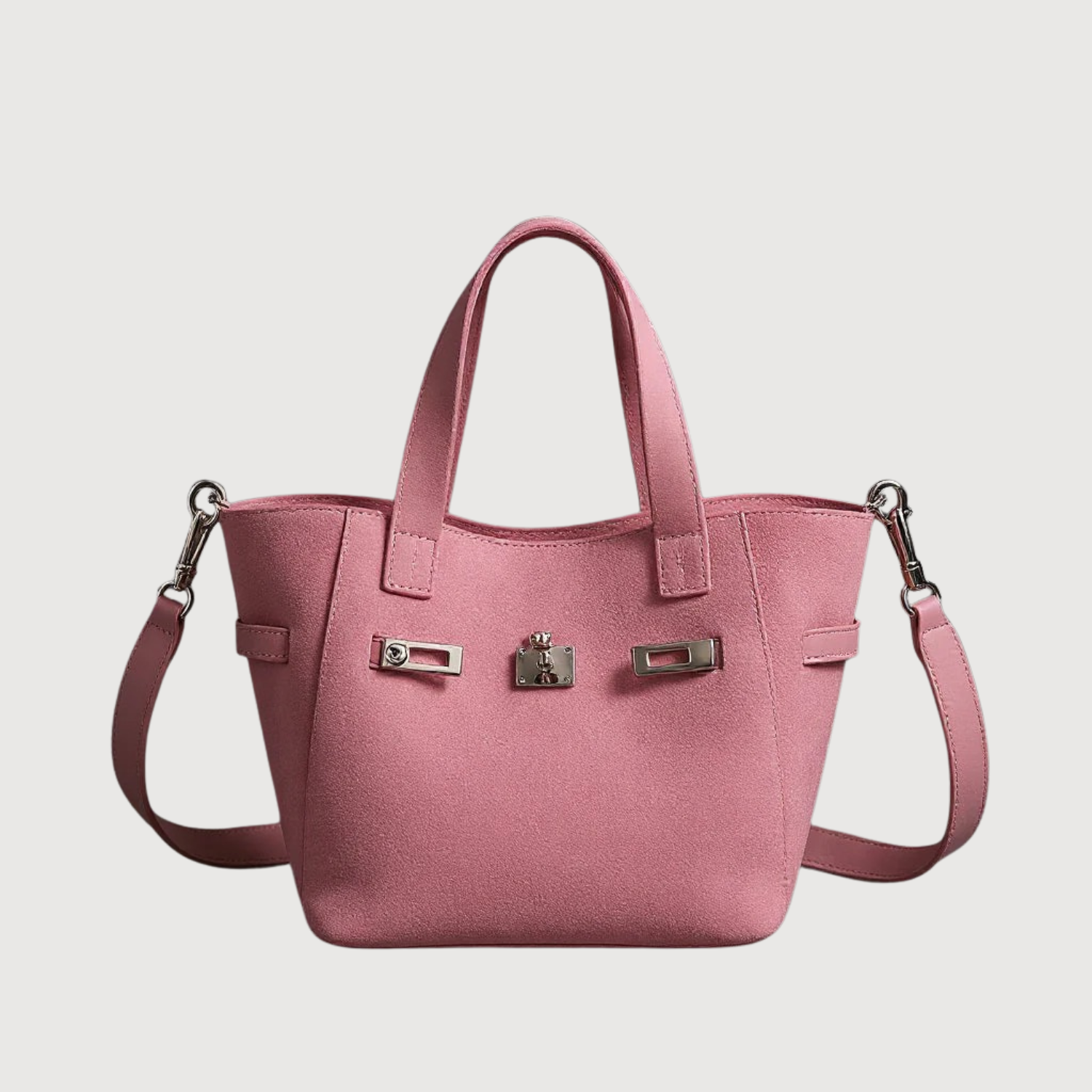Indulge in smooth suede with this chic mini tote, designed with twin handles and a detachable crossbody strap for versatile carry. Polished turn-lock hardware and a refined structured shape make it the perfect fall accessory.